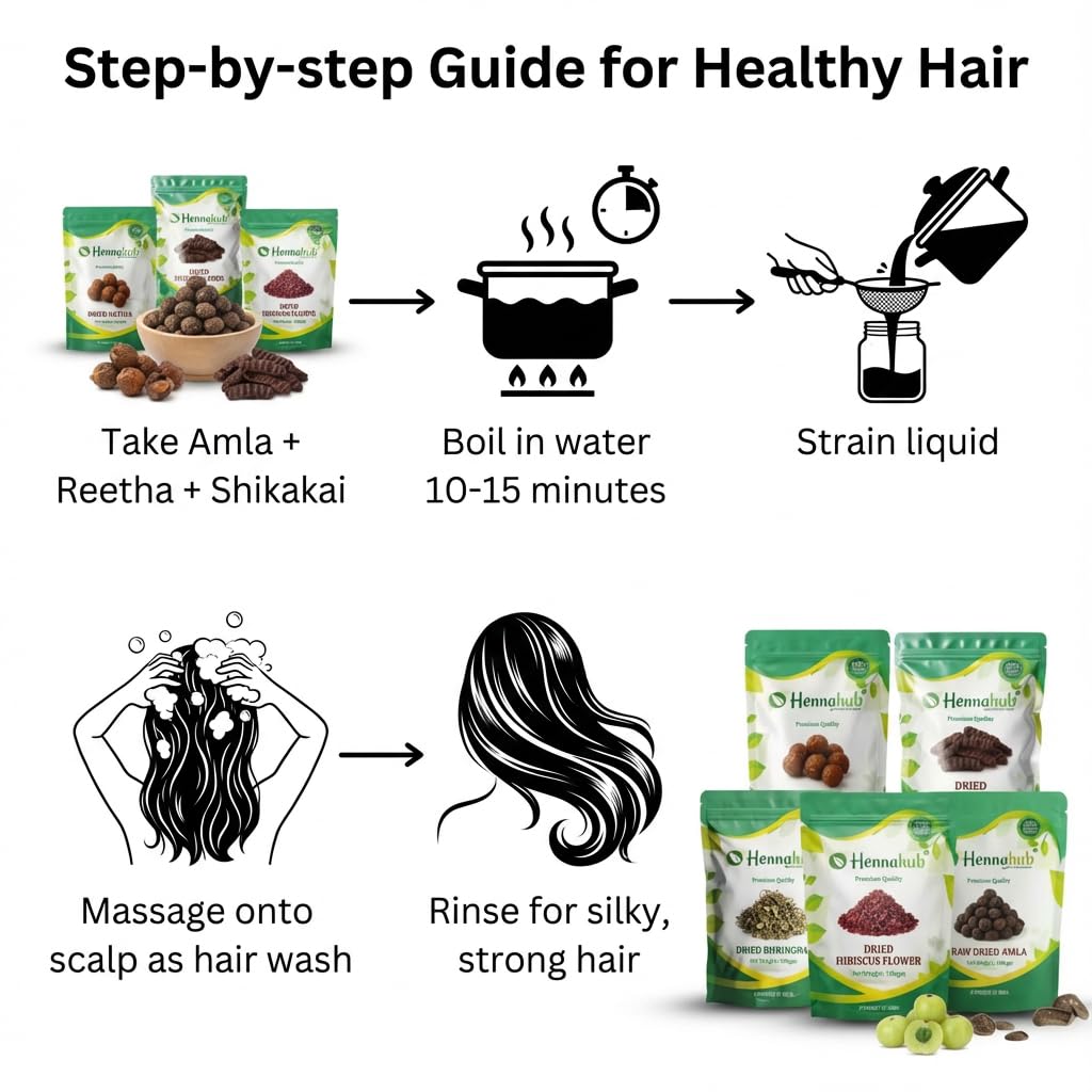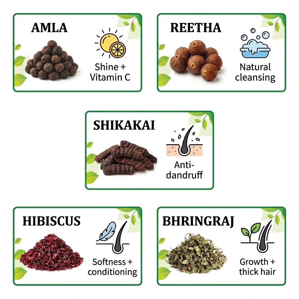 Hennahub Complete Hair Care Raw Herb Combo | Amla, Reetha, Shikakai, Hibiscus & Bhringraj | Pack of 5 × 100g | Traditional Hair Wash, Hair Growth, Anti-Dandruff & Natural Shine | 100% Raw Herbs