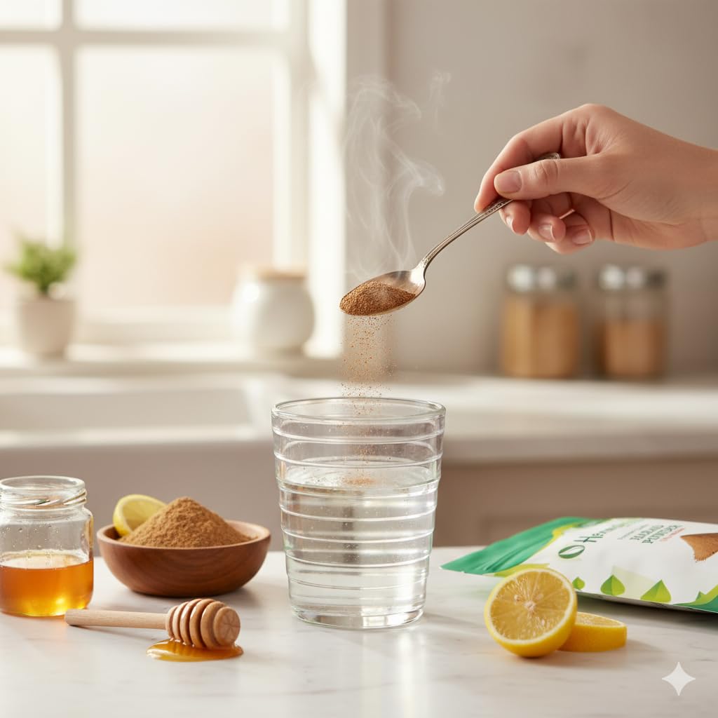 Mix 1/2 teaspoon Harad Powder in warm water and stir well.