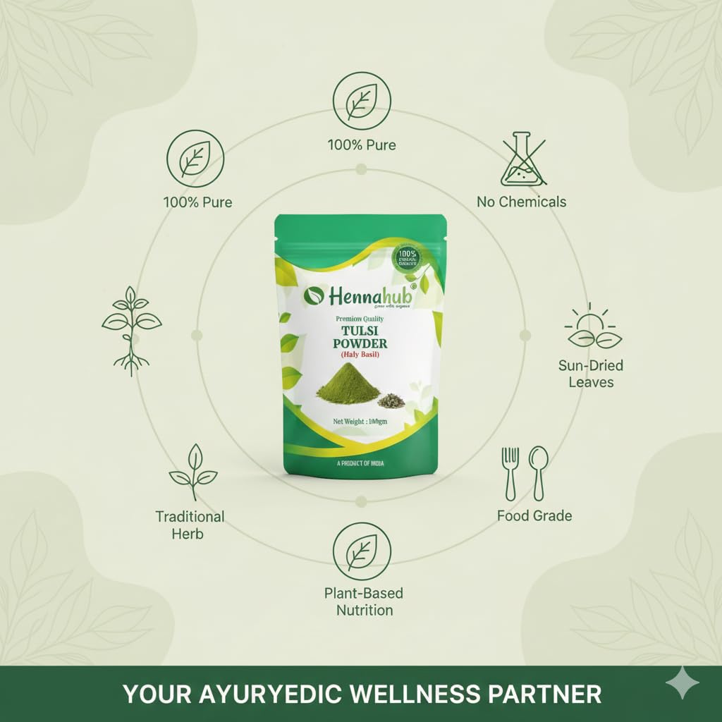 Hennahub Tulsi Powder 100gm (Food Grade) | Holy Basil / Tulasi / Sacred Basil Leaf Powder | Pure Ocimum sanctum | For Herbal Tea, Kadha & Green Drinks
